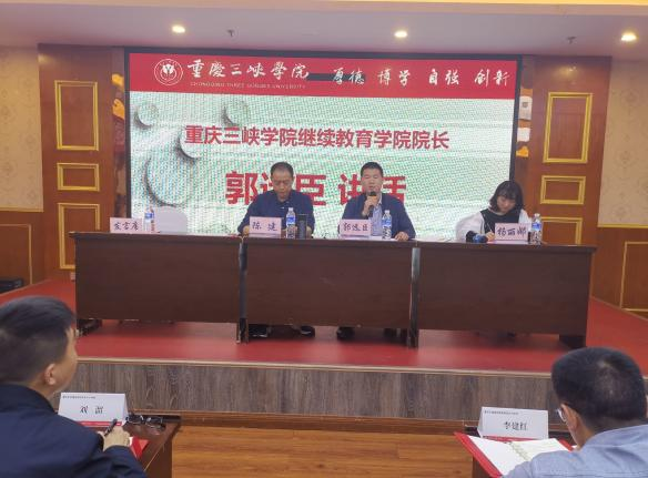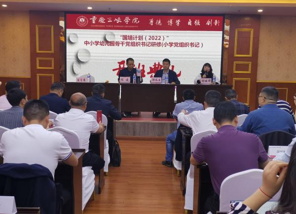 2023年4月16日上午,“国培计划(2022)”中小学幼儿园骨干党组织书记研修(小学)培训在重庆三峡学院开班啦!重庆三峡学院继续教育学院党总支书记陈建,继续教育学院院长郭远臣,继续教育学院培训部主任杨丽娜,本次培训班班主任赵婵杰,参加本次开班仪式,仪式由杨丽娜主任主持。