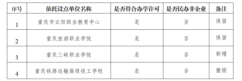 本次拟保留校外教学点2个,新增1个,撤销1个。公示时间为7个工作日。具体名单如下: